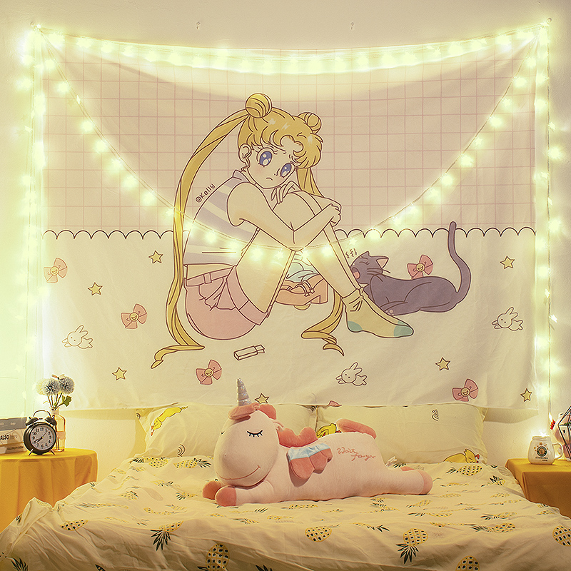 Background cloth ins hanging cloth Beautiful girl net Red dormitory live room decoration girl heart room decoration Bed wall cloth