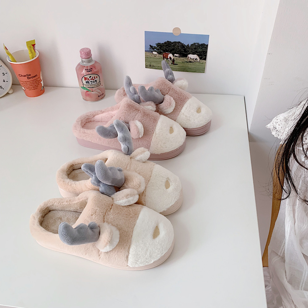 Fine Rules Cotton slippers female winter cute cartoon warm plush slippers moon household indoor dorm in