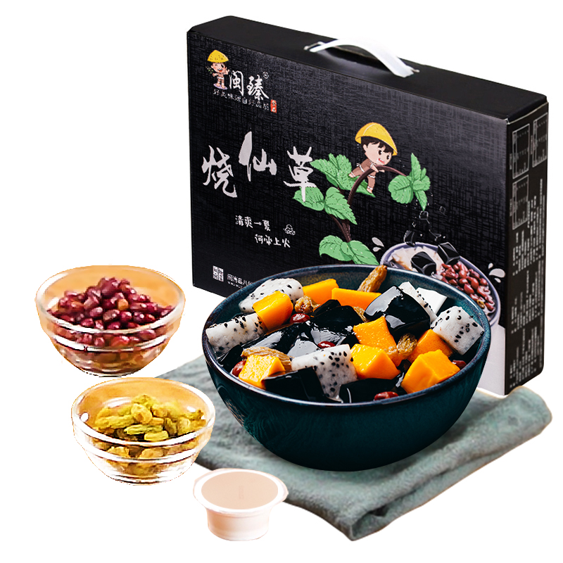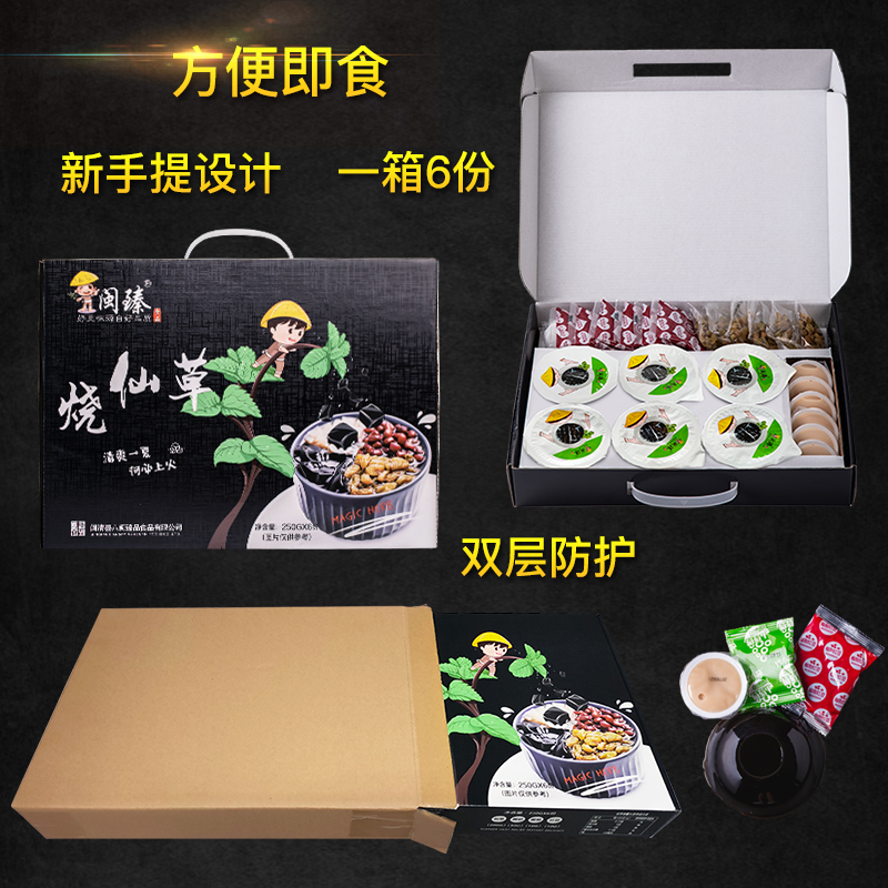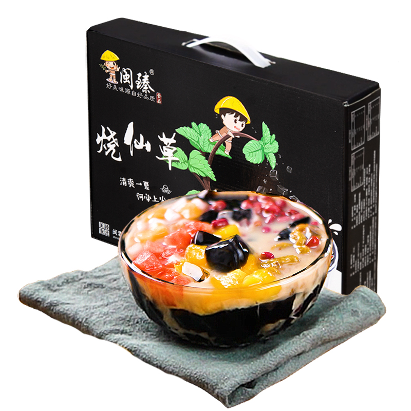 Minzhen Taiwan Burnt Fairy Grass Ready-to-eat Milk Tea 6 Boxes Ingredients Combined Nuts Red Bean Snack Dessert Black Cool Pink Jelly