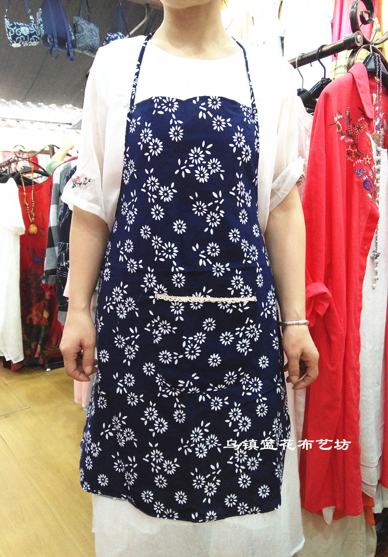 Blue calico small floral apron kindergarten leisure farm ethnic style adult hanging neck bib children's tea picking apron