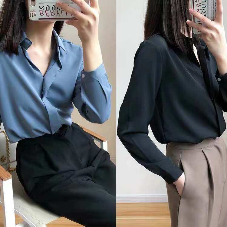 SC634 first-line Japanese capital plant My self-Reunion Concise Knowledge Flap Loose Long Sleeve Shirt Commuter Blouse