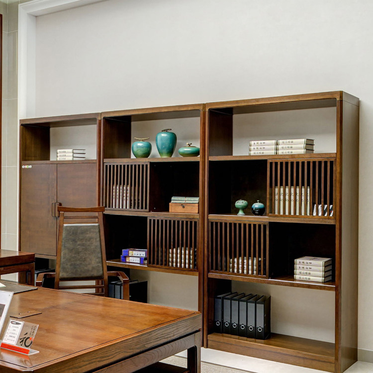New Chinese style solid wood leather sofa i business office modern minimalist office reception room sofa coffee table combination