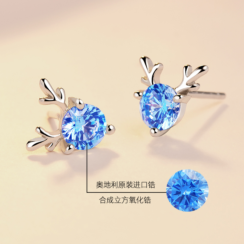 All the way to the deer have you earrings women's sterling silver simple earrings set with diamonds Fashion net red earrings earrings Valentine's Day gift