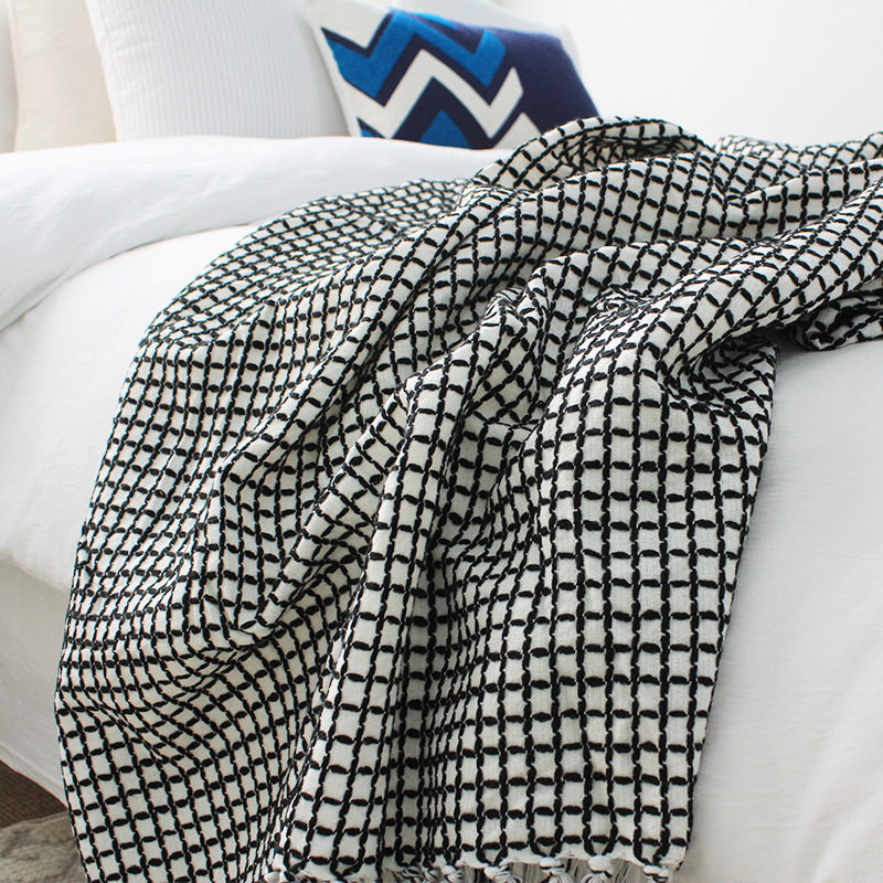 Home Center Autumn Winter Nordic Wind Black-and-white Flow Su Knit Blanket Casual Blanket Sofa Bed Upper Cover Blanket Modern Brief