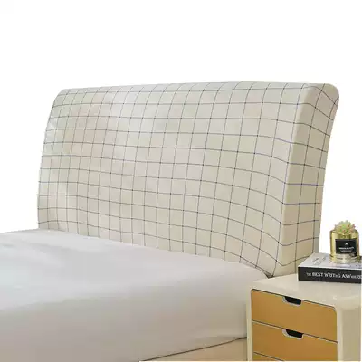 Simple Plaid all-inclusive elastic bedside cover fabric leather bed 1 5 wooden board bed 1 8 meters curved dust cover