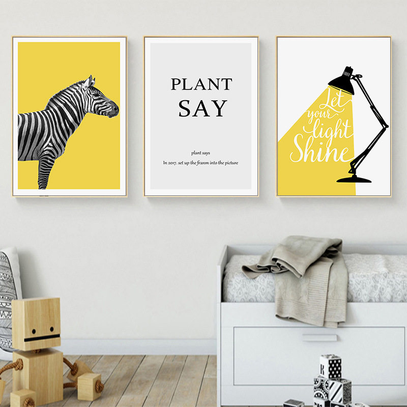 Modern minimalist children's room Bedroom Bedroom bed head Xuanguan decoration painting cartoon yellow table lamp Creative art fresco hanging painting