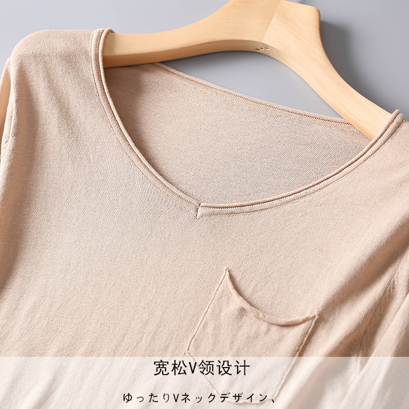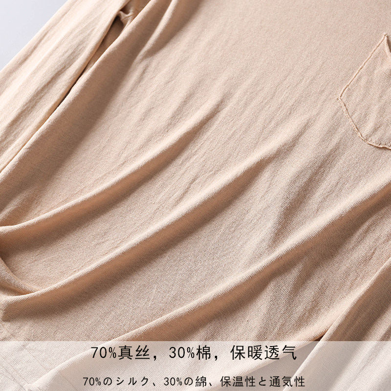 Autumn Winter New Mulberry Silk Cotton V Collar Long Sleeves Inner Hitch Warm Real Silk Blouse Hooded T-shirt Minimalist T-shirt Minimalist