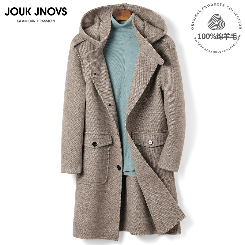 Light luxury new double-sided wool coat male and long autumn and winter coat water ripple fashion coat tide