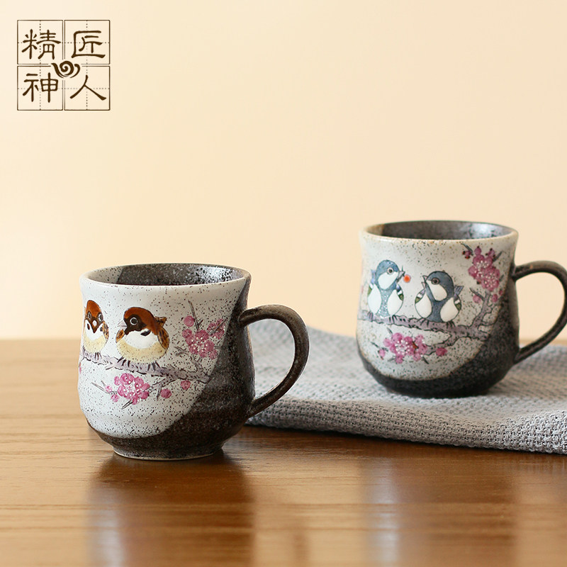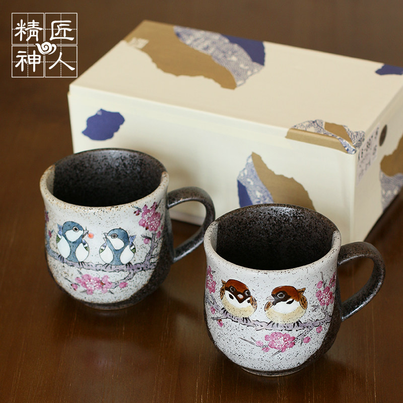 Spot (pair cup)Japan imported Kutani Yaki cute fun tits coarse pottery mug Couple couple cup Best friend cup