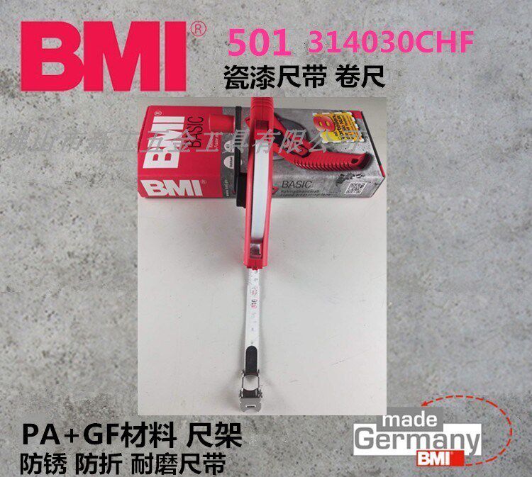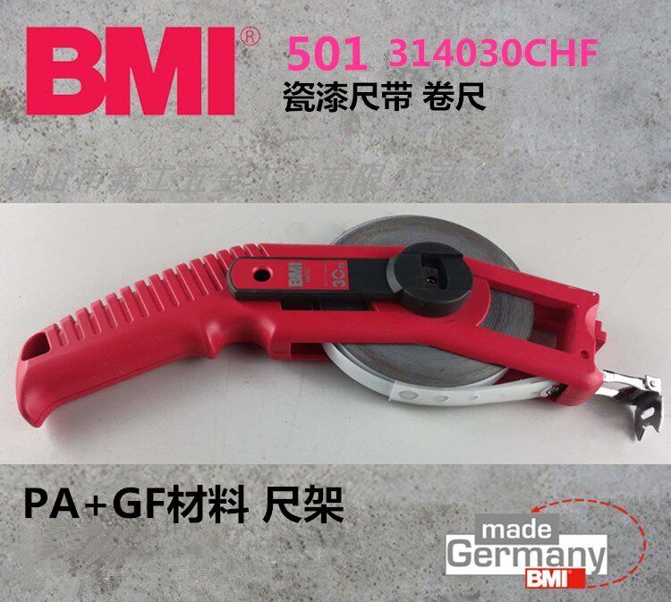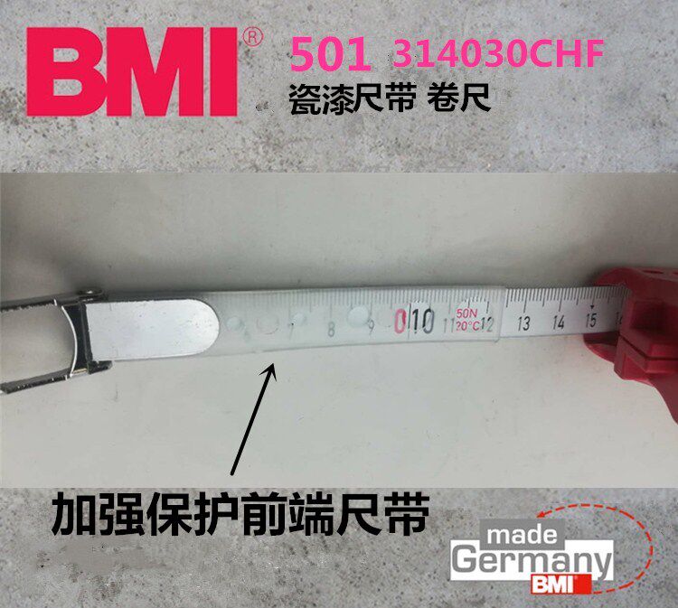 Imported German BMI mandatory steel measuring tape 30 m porcelain painted ruler with 501 series of acid-resistant alkaline rust-proof hand rocking tape