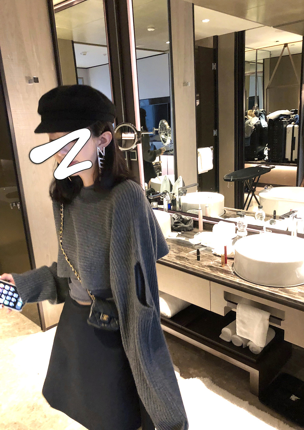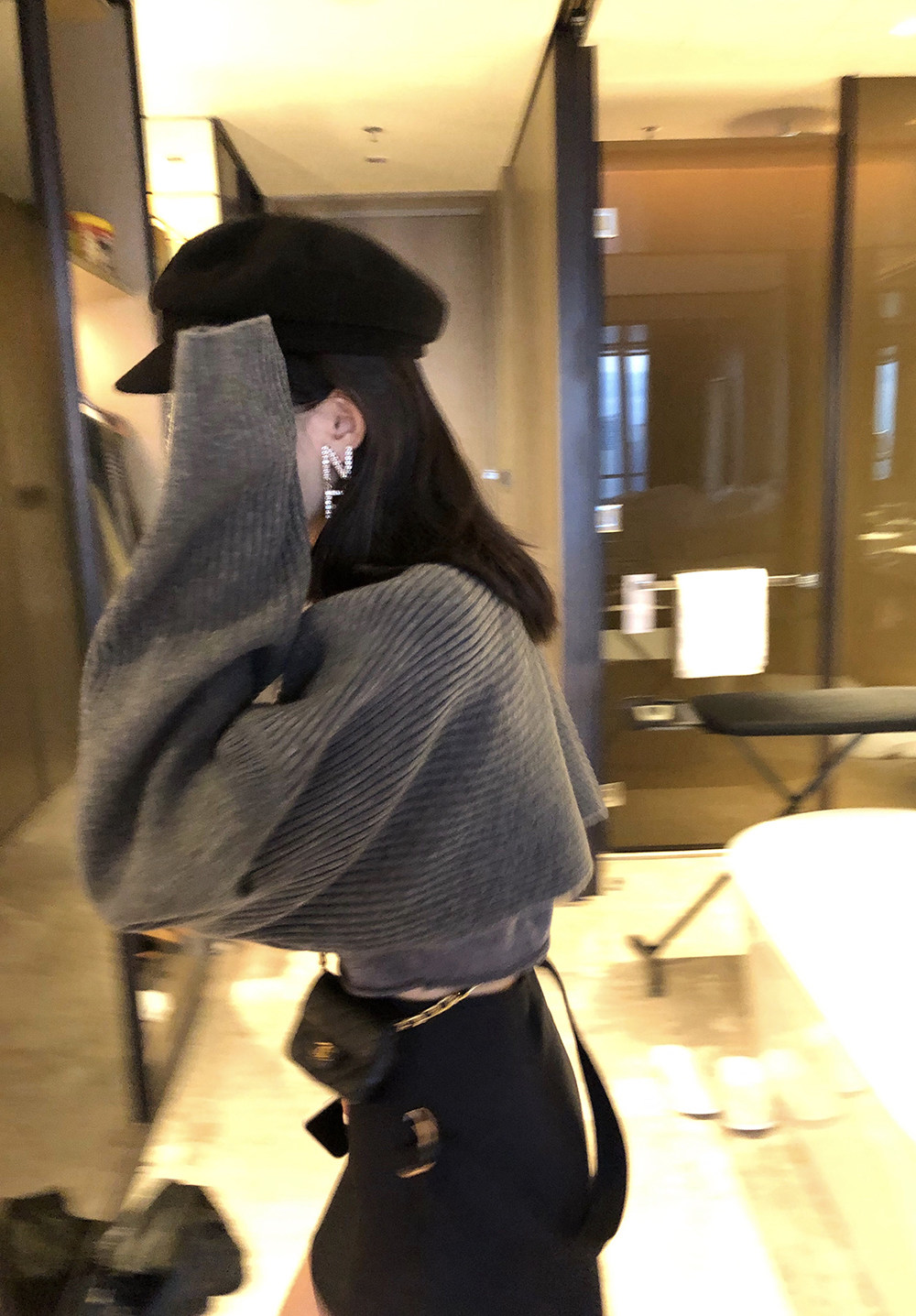 The Handled Lazy Grisles round collar sweater Women's autumn loose sleeves Lazy Shorts two-wear-knitted sweatshirt