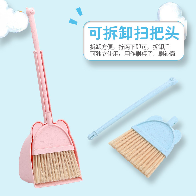 Cute little bear set sweep dust fun mini small broom kindergarten clean soft hair removable dustpan set