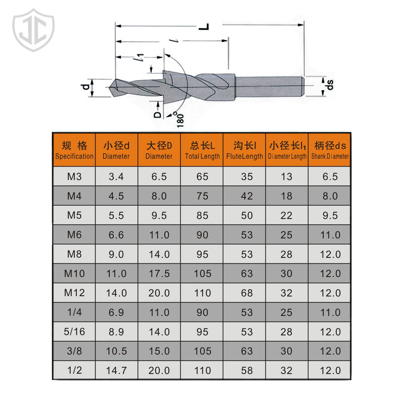 High speed steel sink head drill Second stage sack drill full grinding cobalt steel steel steel steel steel mill M3 - M12