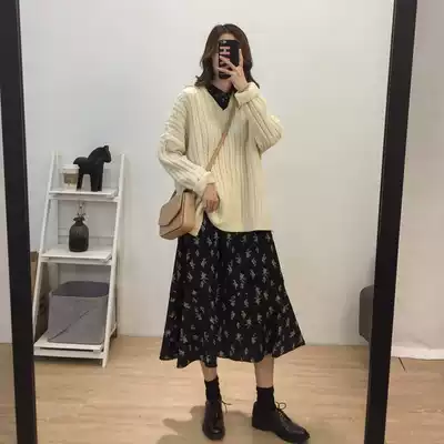 Pregnant women's spring suit 2021 new fashion mid-length version of floral chiffon dress pregnant women's skirt two-piece set