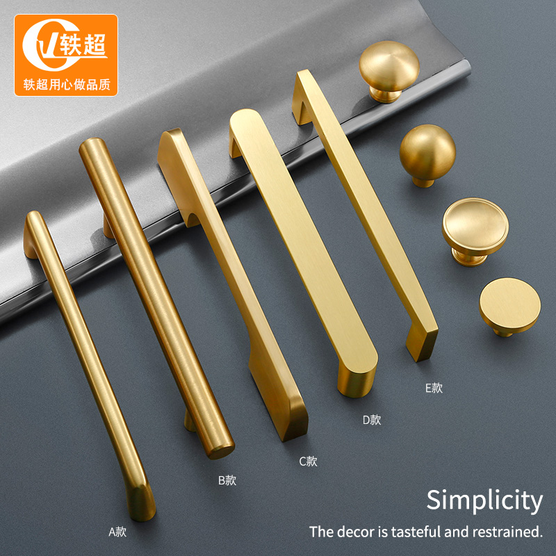 Pure copper color handle cabinet door drawer brass handle modern simple light luxury wardrobe all copper handle whole Cabinet handle