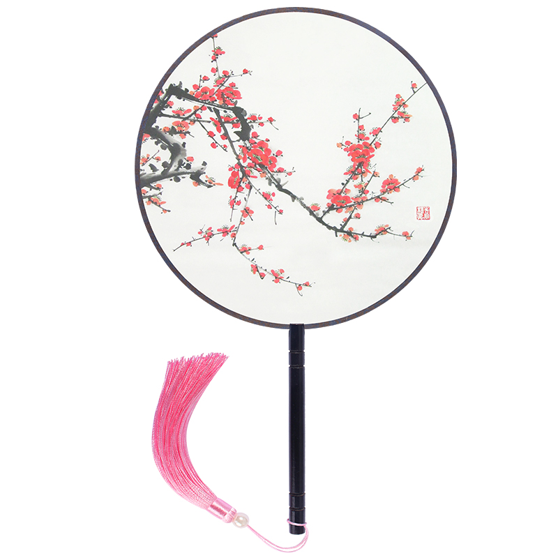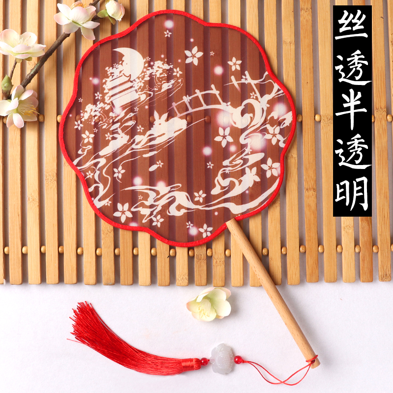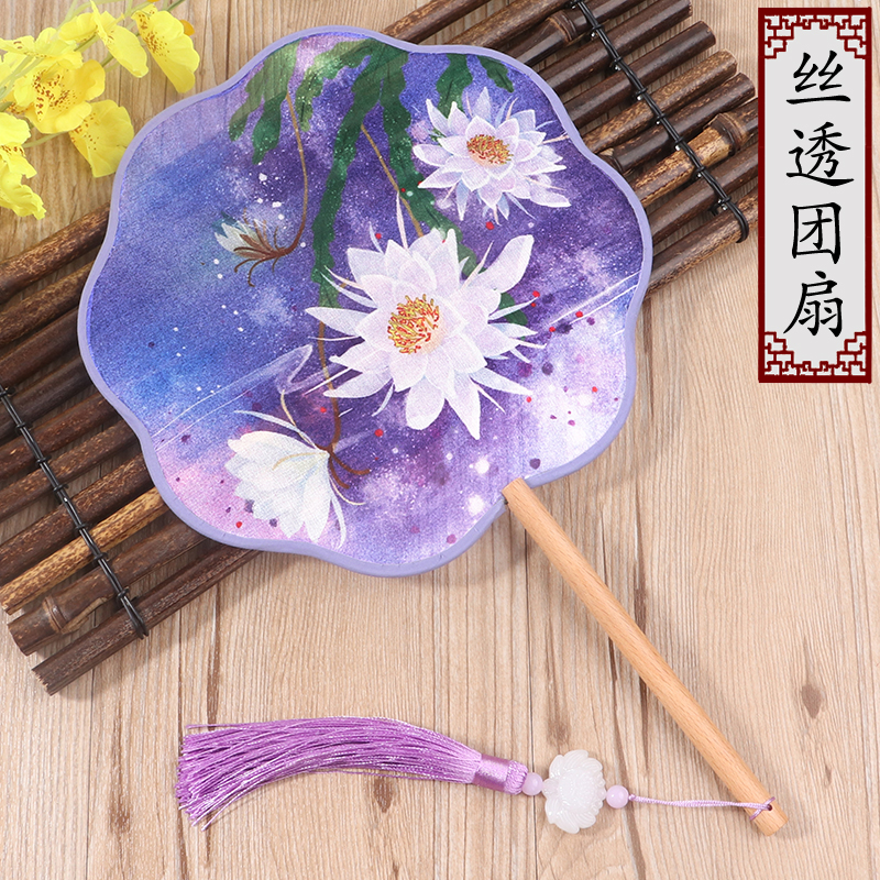 Translucent long handle flow Susilk overdraft fan retro wind bifacial palace fan round fan in ancient fan performance dance fan