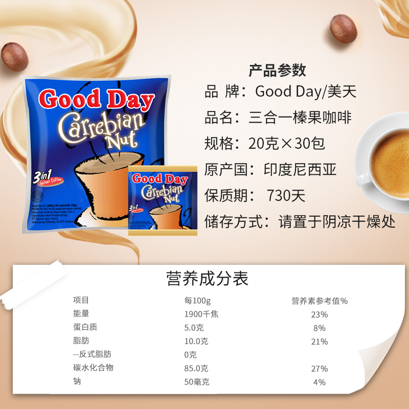 Indonesian Original Imported Goodday Good Day Good Day Merino Instant Coffee Powder Hazelnut 600g * 2 Bagged