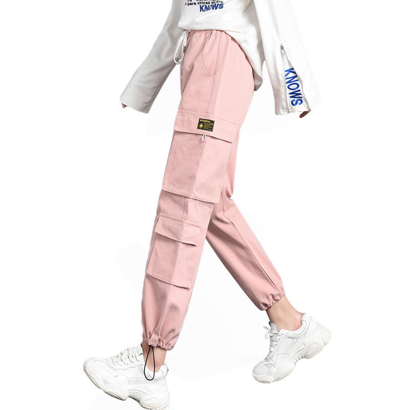 Thin section of work pants teenage girl raw spring autumn clothing 2022 new junior high school high school students loose casual sports trousers
