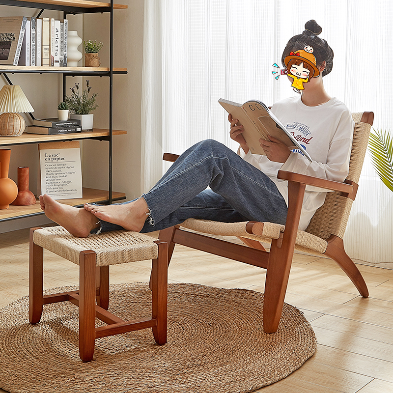 Japanese rattan solid wood sofa chair living room chair rope back lazy reading chair rattan balcony leisure chair