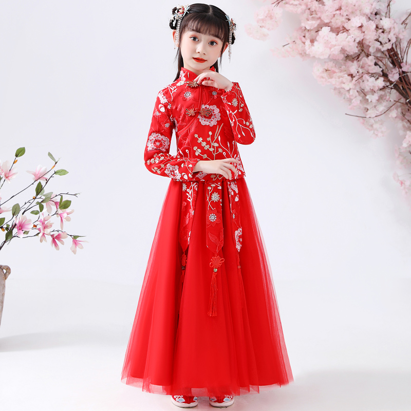 Girls' Hanwu Ancient Fairy Children's Cheongsam Princess Dress Chinese Style Dress Spring Autumn Skirt