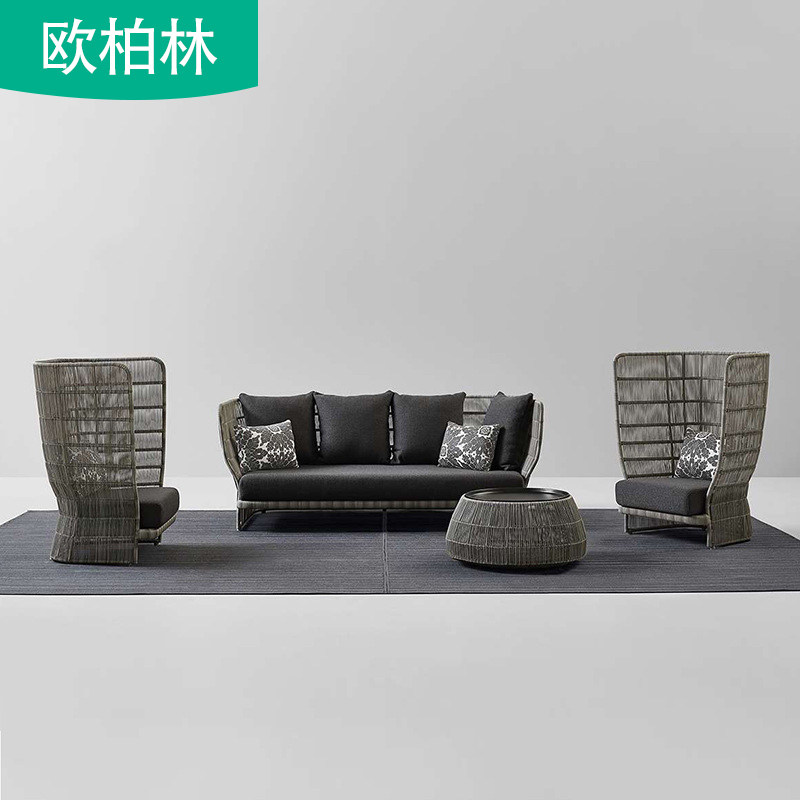 Outdoor Nordic simple rattan sofa furniture living room three-person sofa outdoor balcony single sofa coffee table combination