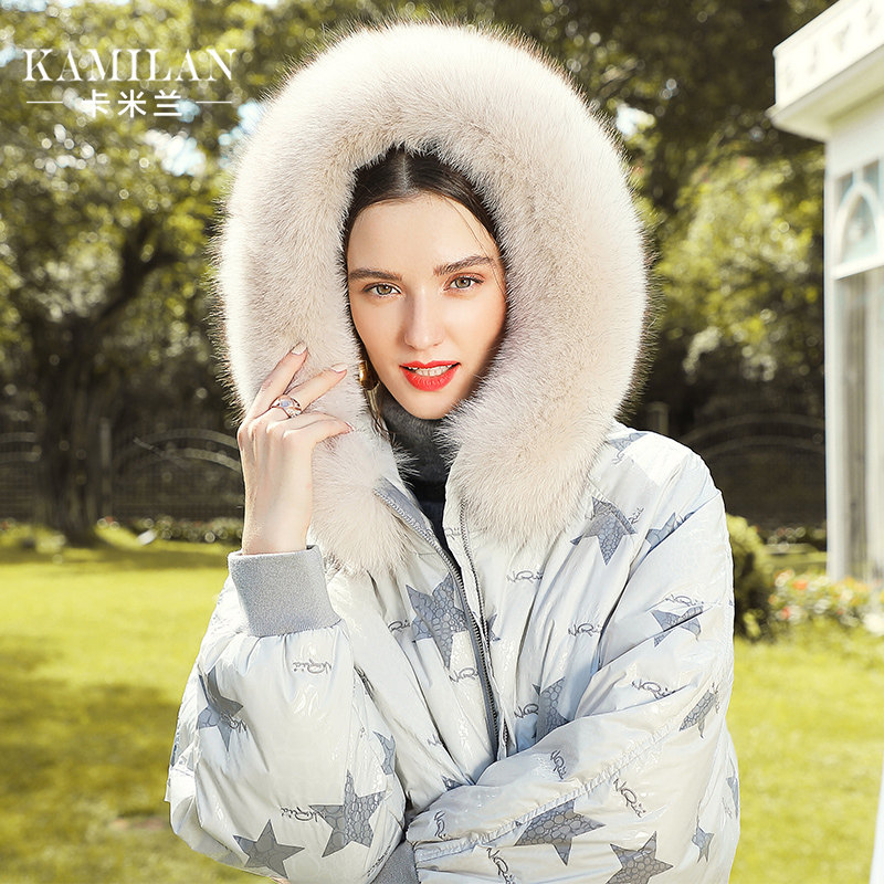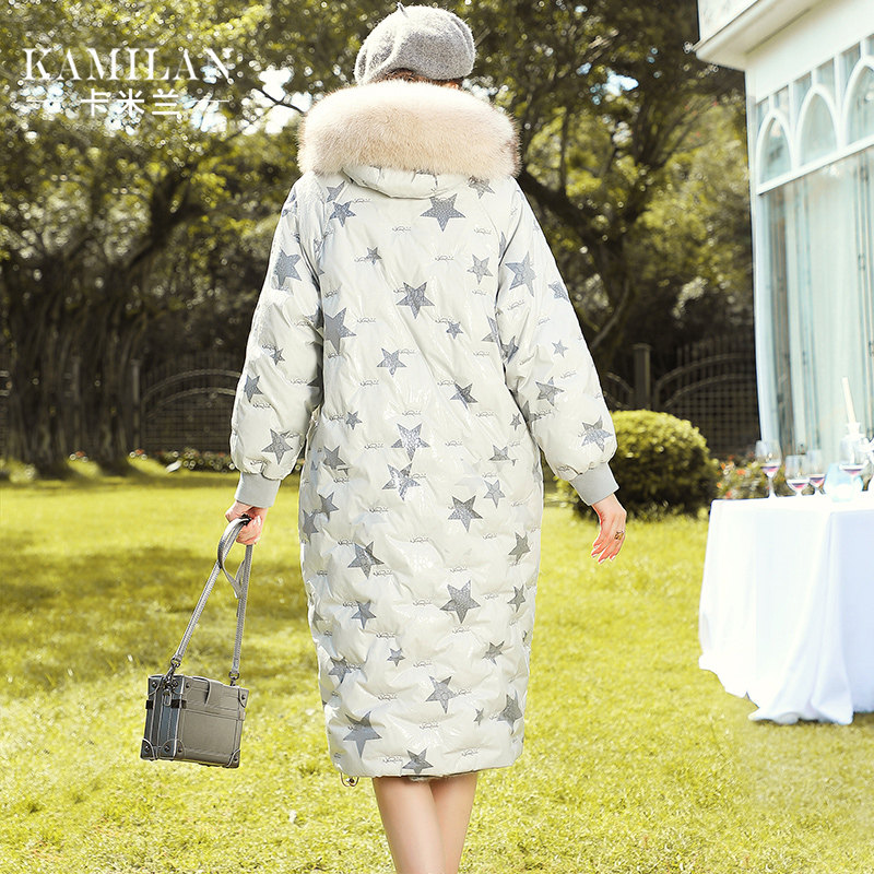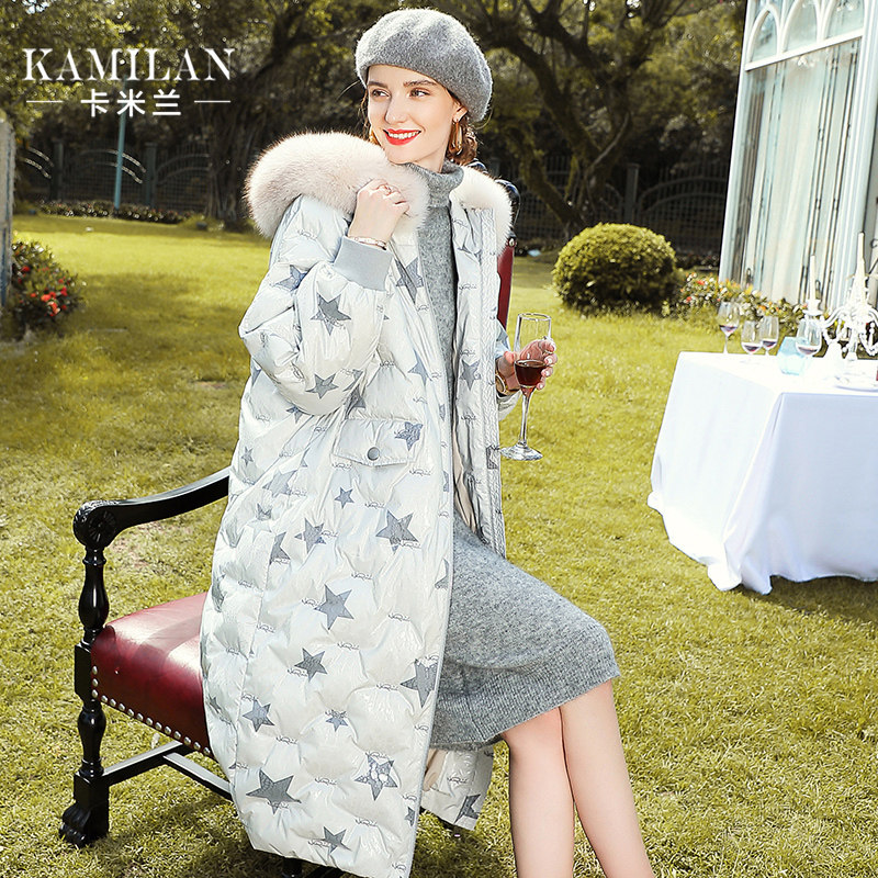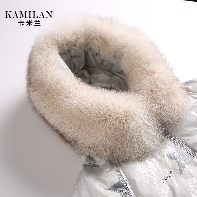 Camillan down jacket women's winter new mid-length version of the big fox fur collar stitching down jacket