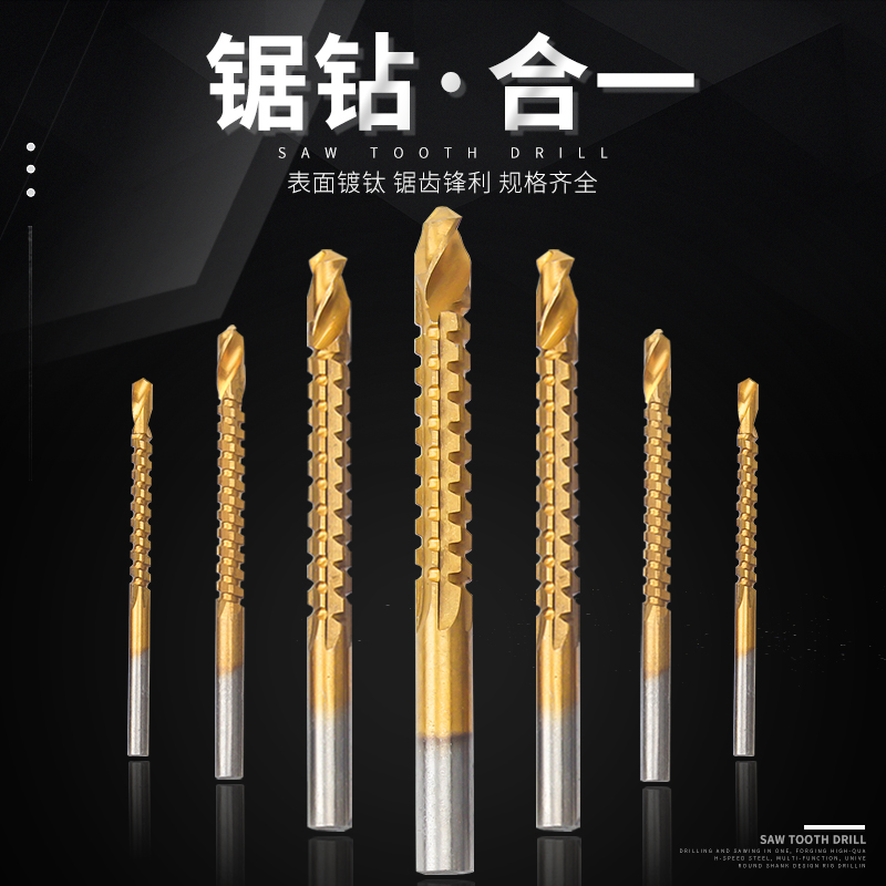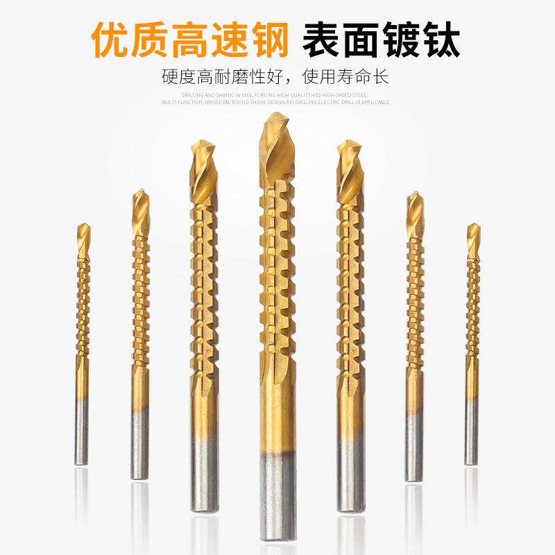 Twist Drill Suit Drill drill Multifunction Pull Groove Serrated Drill Serrated Drilling Wood Punching Metal Chamberler Alloy Plank Pull Groove
