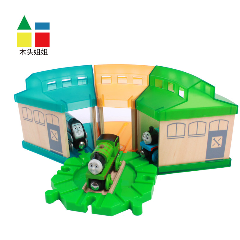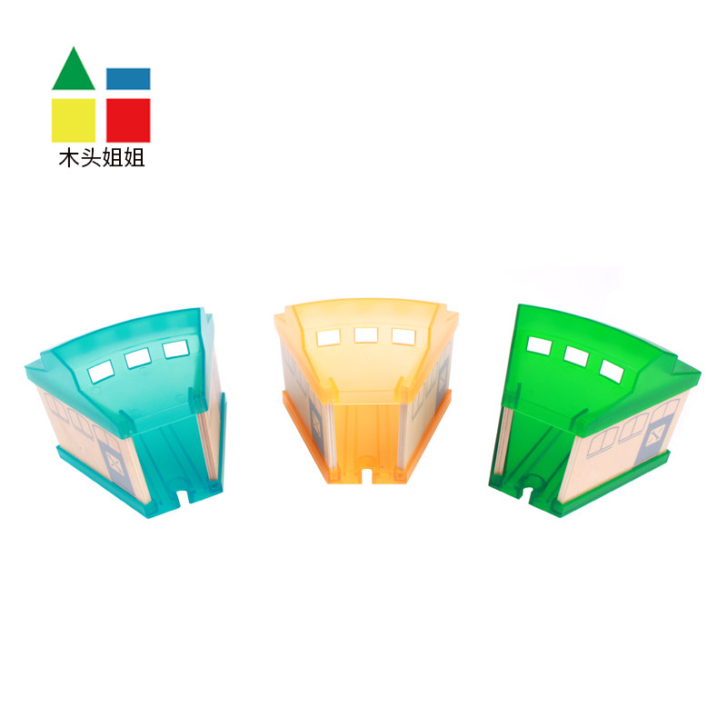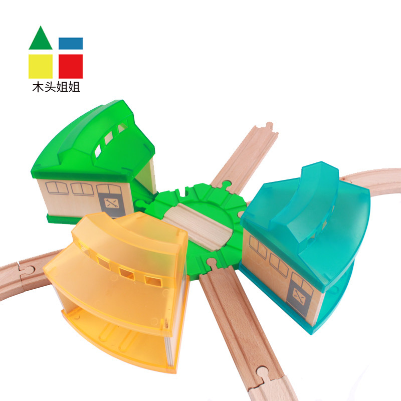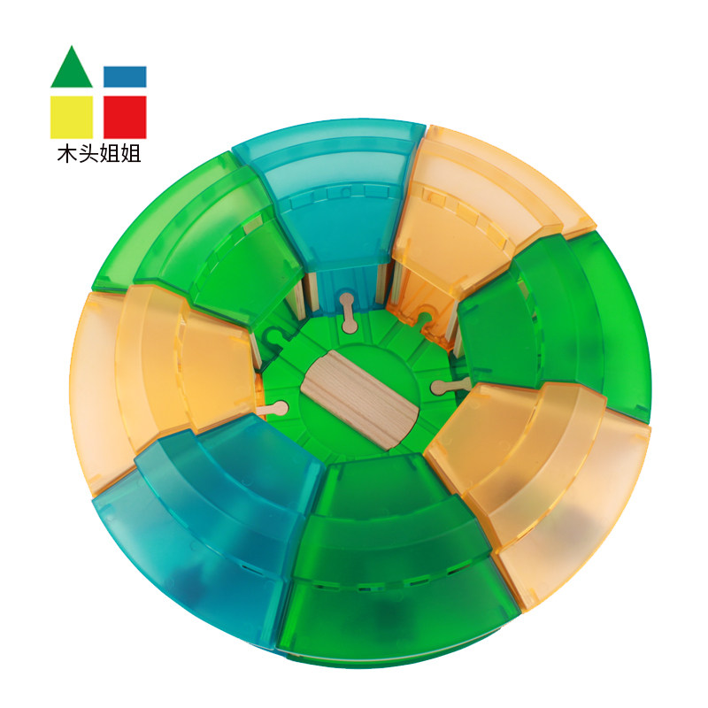 A group of three-color single colorful garage (transparent green) single colorful garage (transparent orange) single colorful garage (transparent cyan) green eight-way turntable three yellow colorful garages one turntable three blue