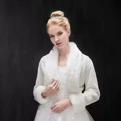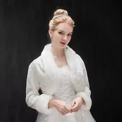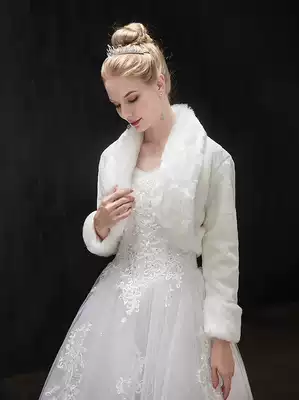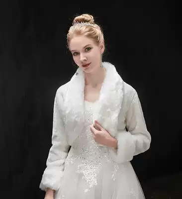 Bridal wedding wool shawl winter female wedding 2018 warm fur white red long-sleeved large size dress jacket