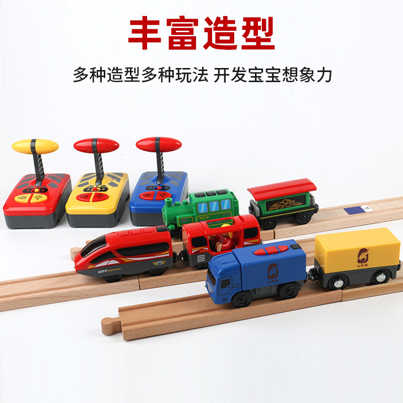 Remote control sound electric train compatible with IKA wooden track magnetic train for puzzling children's toy car