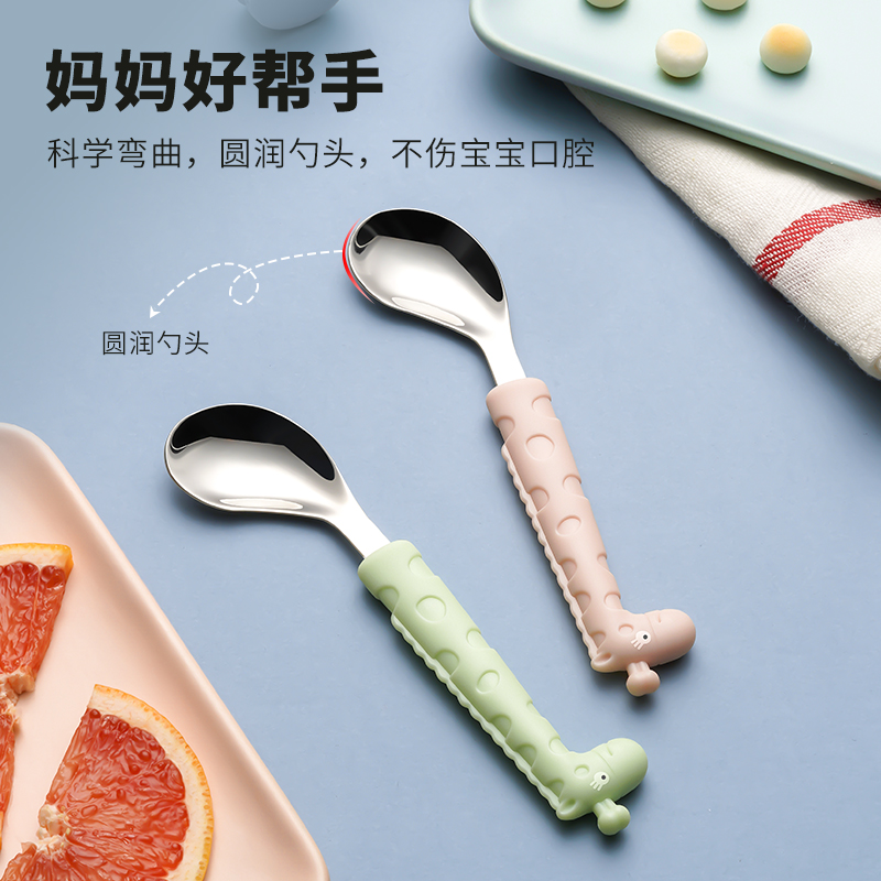 Baby learn to eat training spoon Children's food spoon Stainless steel tableware Baby bowl fork spoon tool set artifact