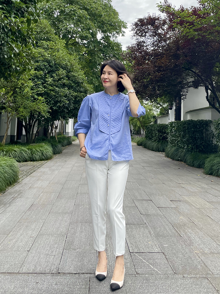 I'm a skyscraper blue dolls-in-shirt spring combed cotton French style palace wind bubble sleeveless design feel shirt