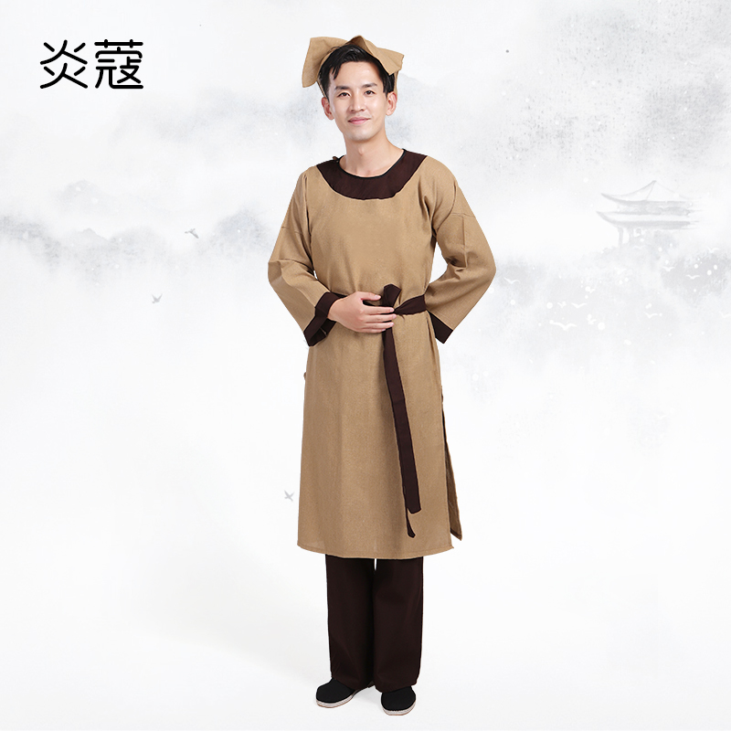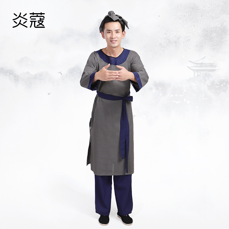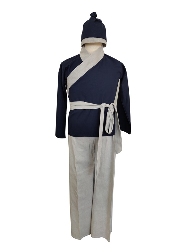 Cross-collar people's dark gray top and black pants Cross-collar people's light gray top and sapphire blue pants Cross-collar people's sapphire top and light gray pants Cross-collar people's black top and dark gray pants Cross-collar people's khaki top dark coffee
