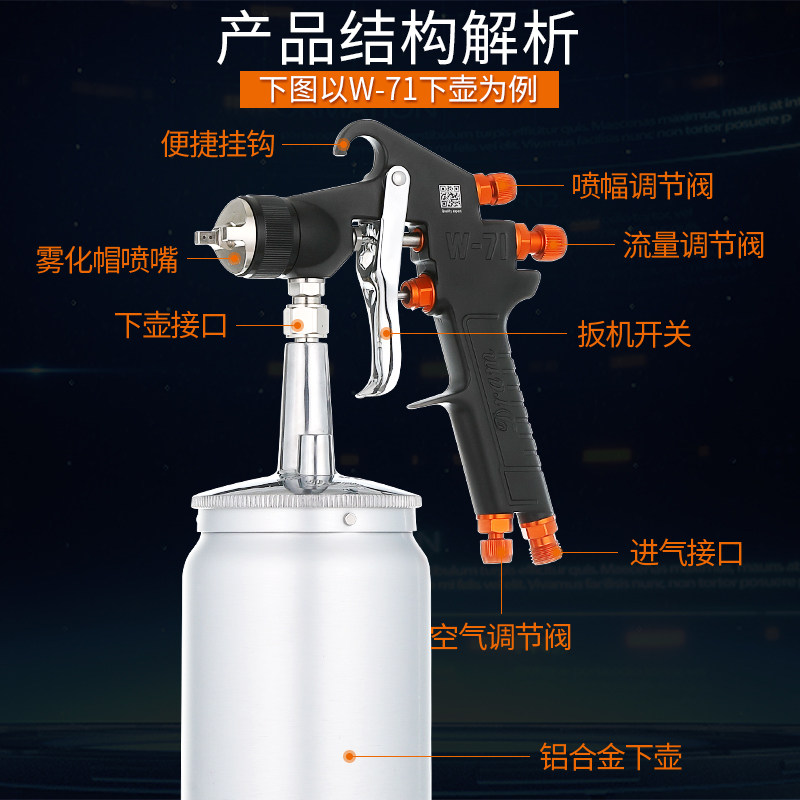 Draymar W-71 Woodworking Furniture Furniture Paint Spray Guns W71 77DF80 Up And Down Pot Car High Atomization Spray Paint