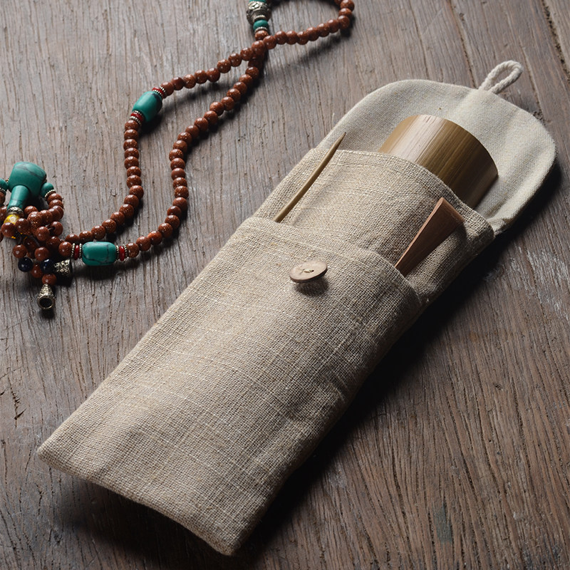 Japanese pure cotton cotton tea ceremony accessories double - deck bag tea - pack three - piece cloth bag travel portable