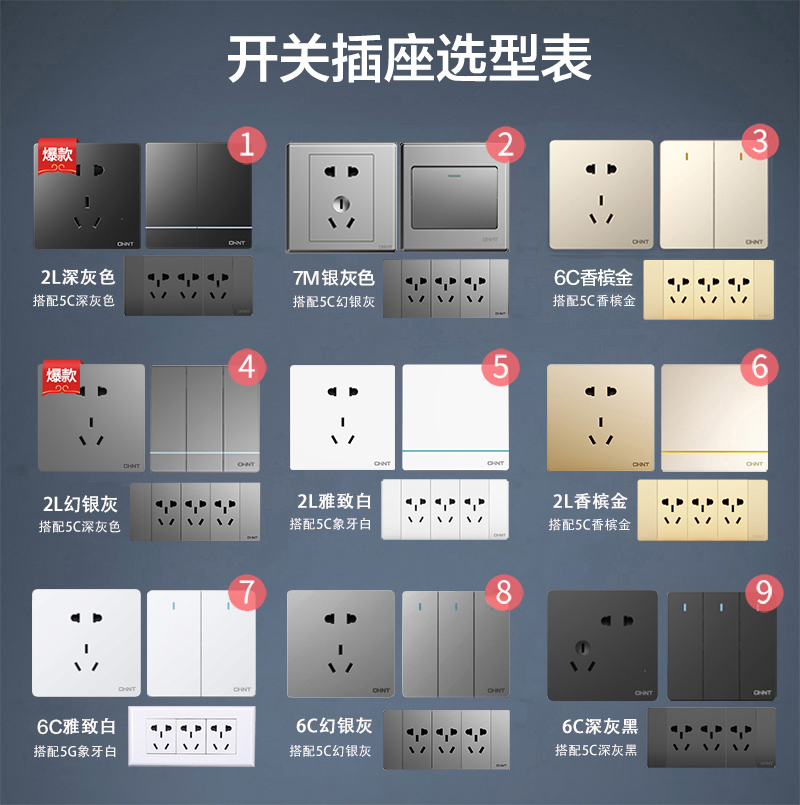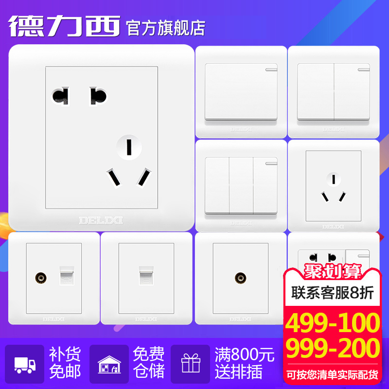 Deli west wall switch socket panel porous household wall type 86 cut seat 5 eyes five holes two three plug dark line