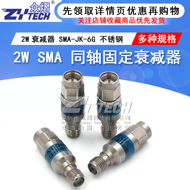 2W COAXIAL fixed attenuator SMA-JK male to female 5 10 20 30DB attenuator Stainless steel 0-6G