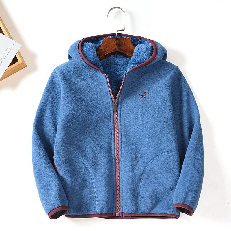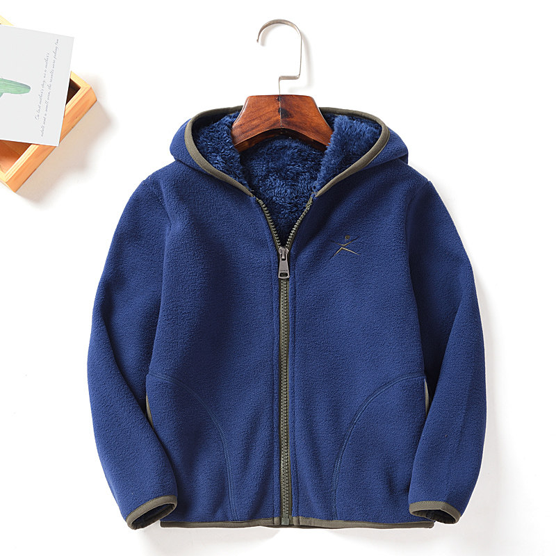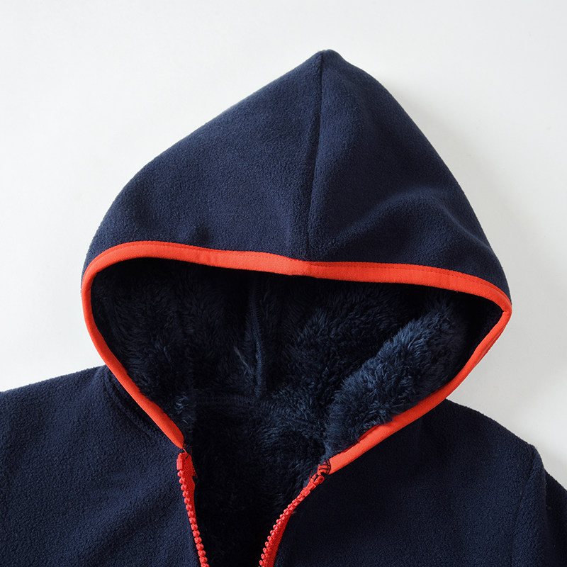 Autumn and winter boys and girls clothing fleece top plus velvet thick cardigan warm fleece jacket baby hooded tide sweater