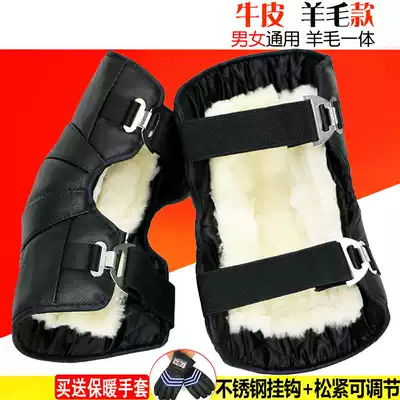 Electric car warm knee pads for men and women riding locomotive leather knee pads winter protective gear windproof and cold wind leg protection