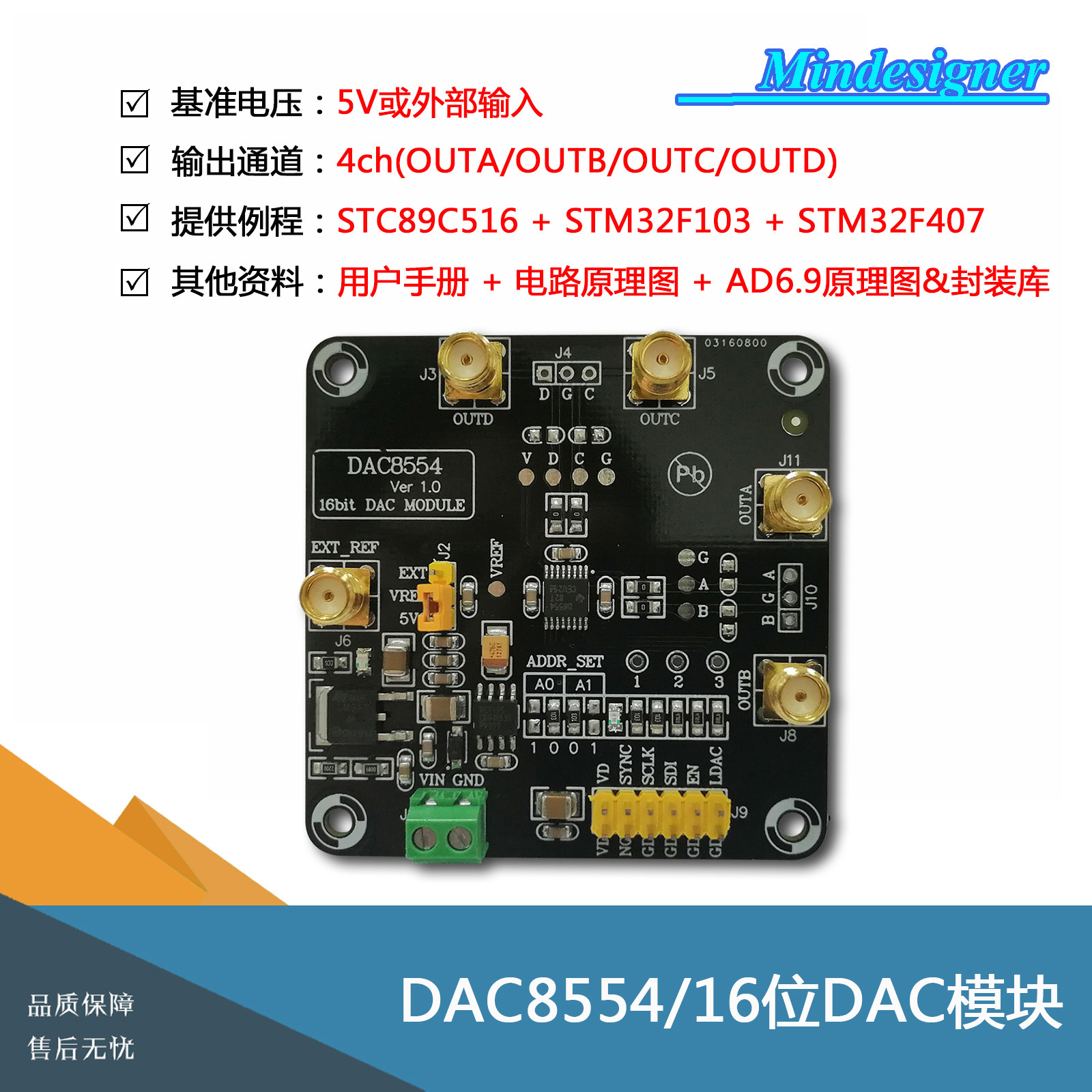 DAC8554 module 16-bit DAC module 0-5V 4 paths High precision digital module DAC8554IPW