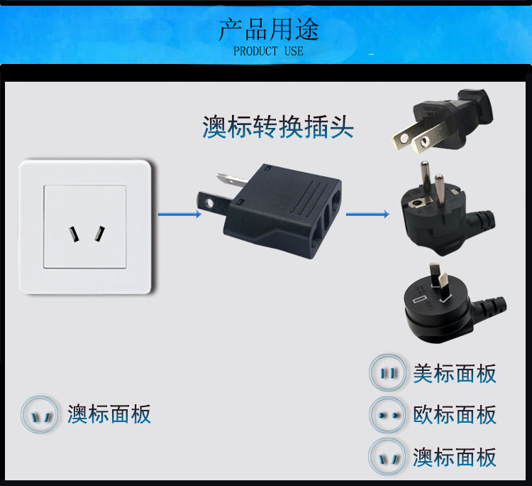 Australian standard eight-character converter Australian domestic three-phase side two-phase converter mobile phone charging mini conversion plug