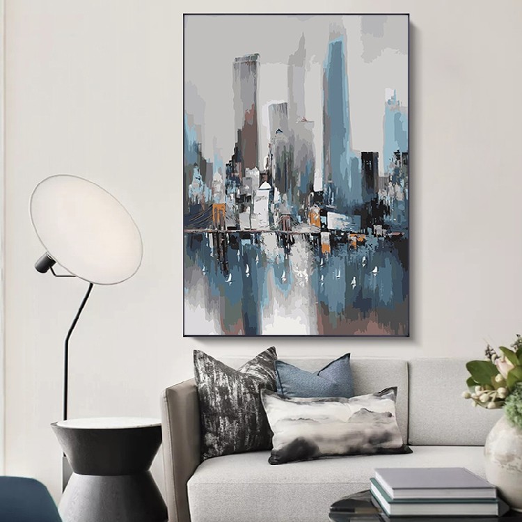 Vertical DIY coloring digital oil painting Modern simple Nordic living room light luxury abstract architectural landscape decorative painting
