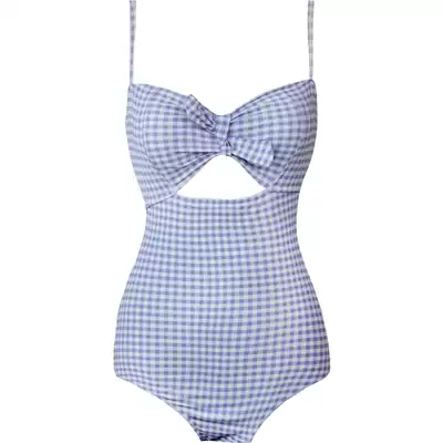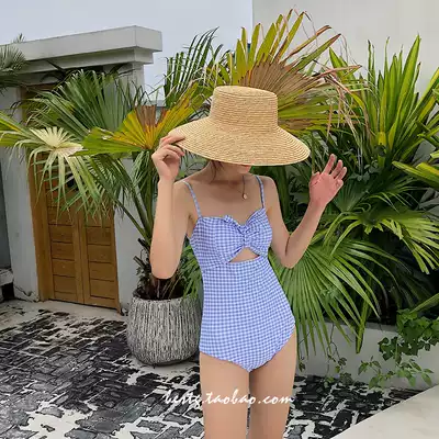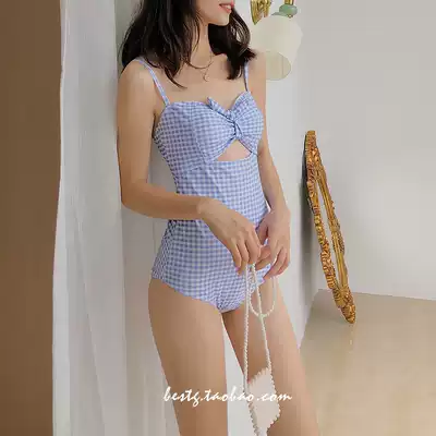 Mimoi Light blue plaid cute Japanese swimsuit ins wind Korean girl one-piece fairy fan hot spring swimsuit female