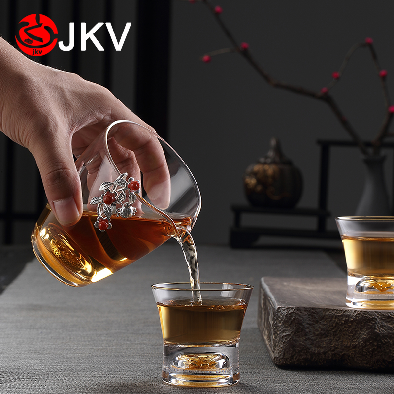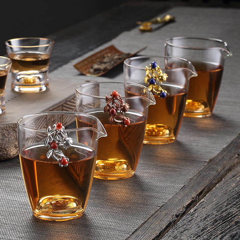 Inlaid silver glass fair cup tea leak set heat-resistant Japanese male cup filter Kung Fu tea set thickened tea sea tea divider