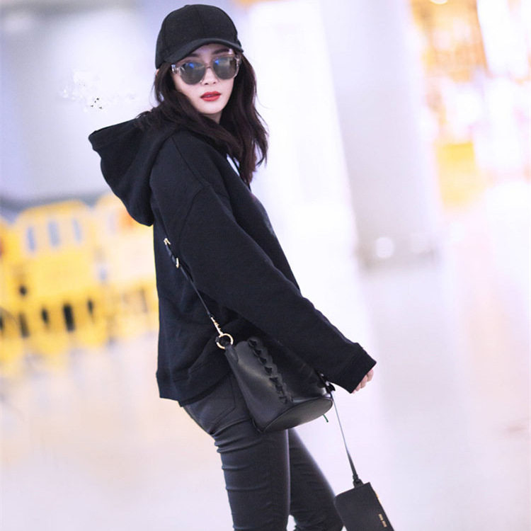 Special cabinet 2021 autumn and winter new Yang power Tongtong black thick cotton T female Han version loose with cap jacket head jacket tide