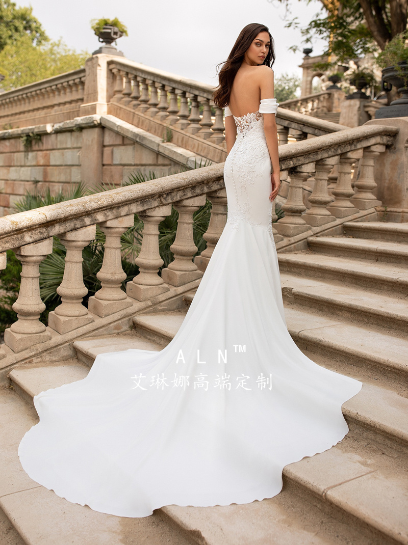 Fawn Satin Fish Tail Light Wedding Dresses 2022 New Brides Slim Fit Slim Drag Tailors to the Veil Woman