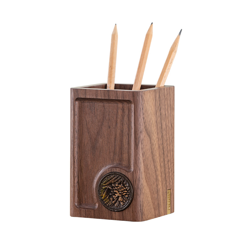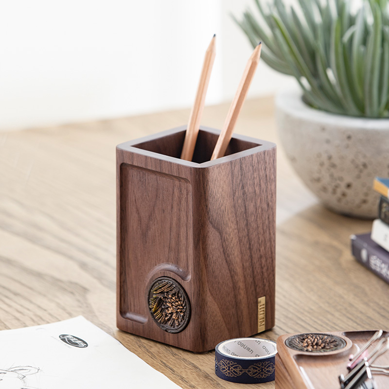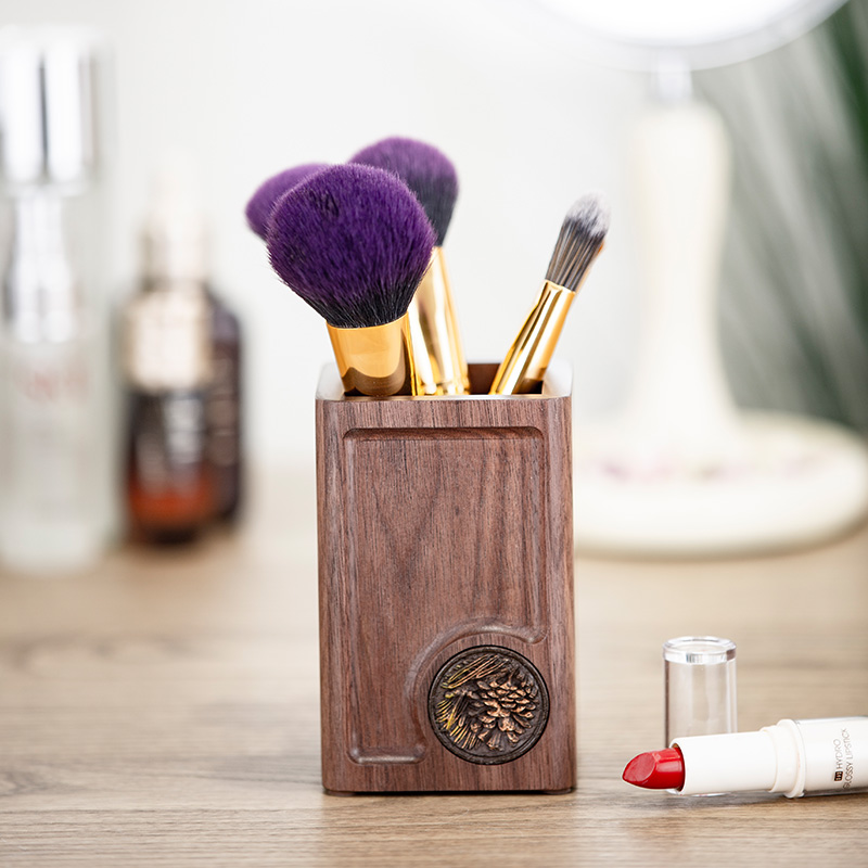 Solid wood pen holder creative vintage walnut simple study stationery office makeup brush desktop storage box ornaments