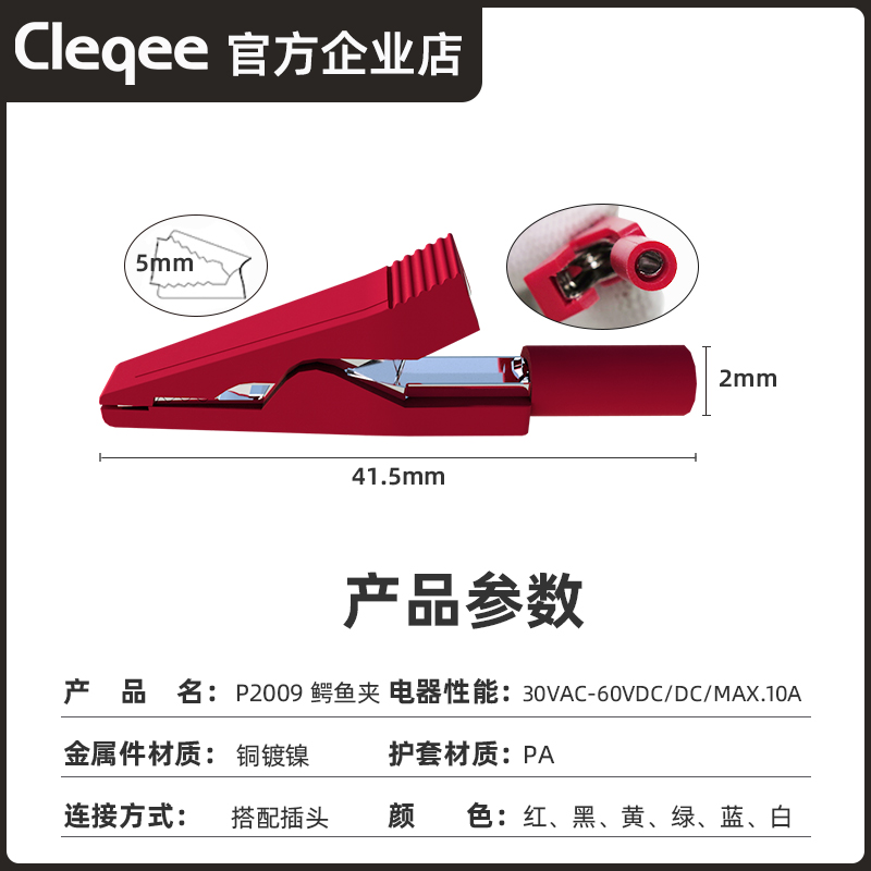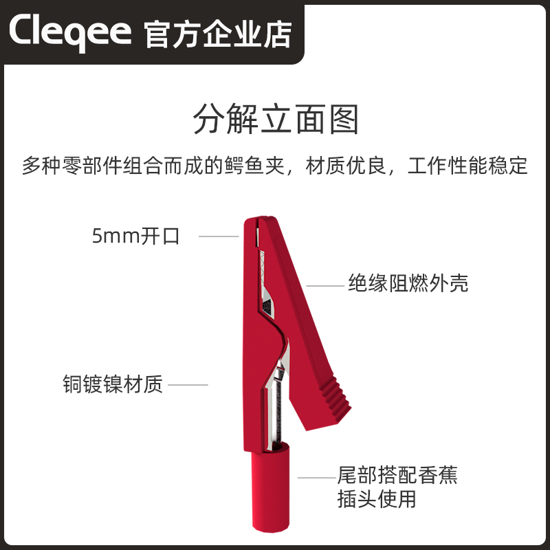Cleqee Wanuses electric meter needle fish clip tail 2mm pin jack jack crocodile clip material nickel plated copper PA