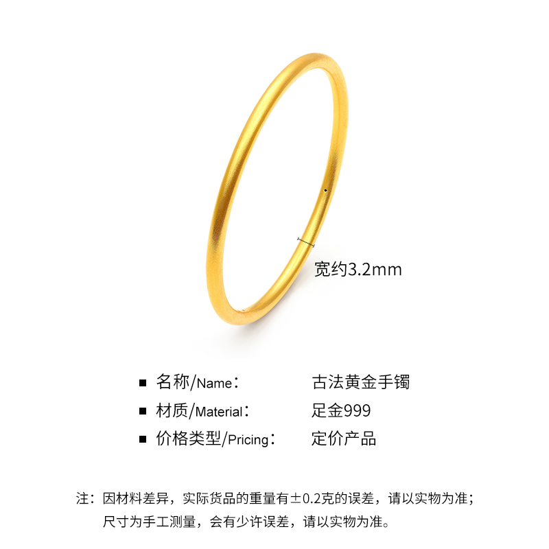 Ancient Law Gold bracelet female section 999 foot gold 3D hard gold pass 24K pure gold vegetarian ring golden bracelet to send mom gift