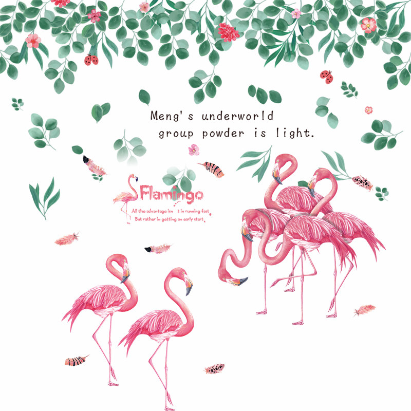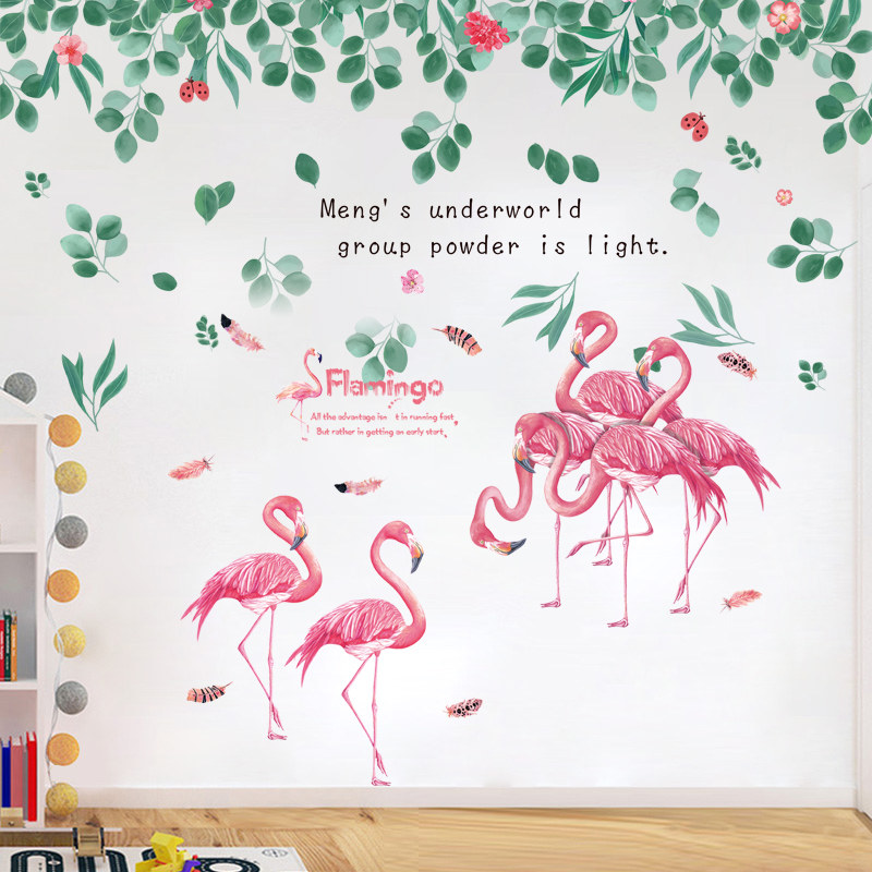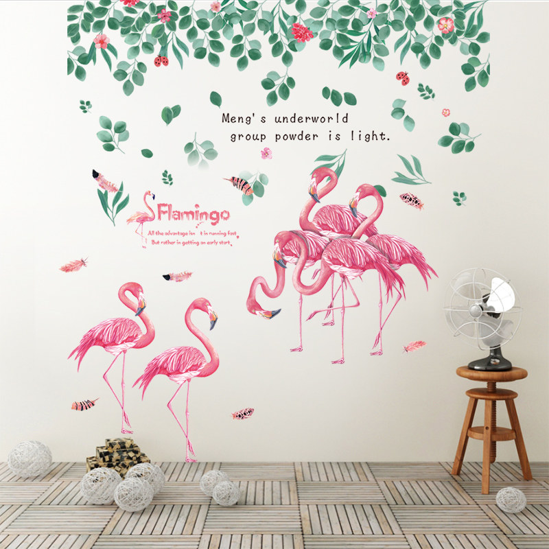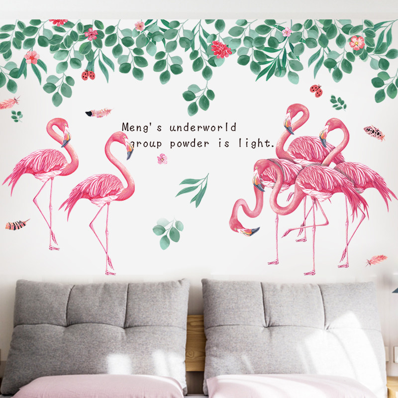Flamingo wall stickers girl heart bedside net red rental house renovation college student dormitory wallpaper self-adhesive bedroom stickers